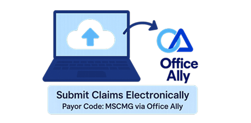 Log in to Office Ally and select MD Senior Care Medical Group using Payor Code MSCMG.